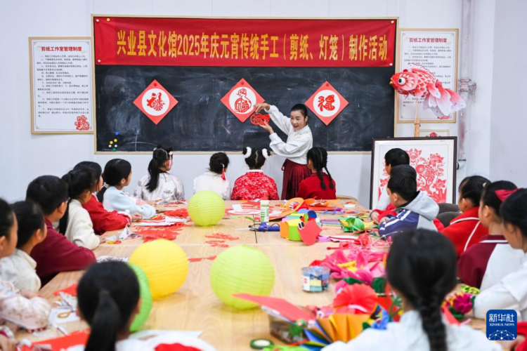 寒假里,广西玉林市兴业县教育部门与县文化馆通过组织剪纸、制作灯笼、包汤圆等趣味活动,丰富学生的假期生活,迎接即将到来的元宵佳节。