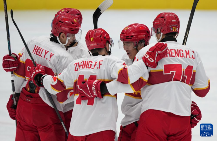 当日,在哈尔滨冰球馆举行的2025年第九届亚冬会男子冰球小组赛A组比赛中,中国队8比0战胜泰国队。