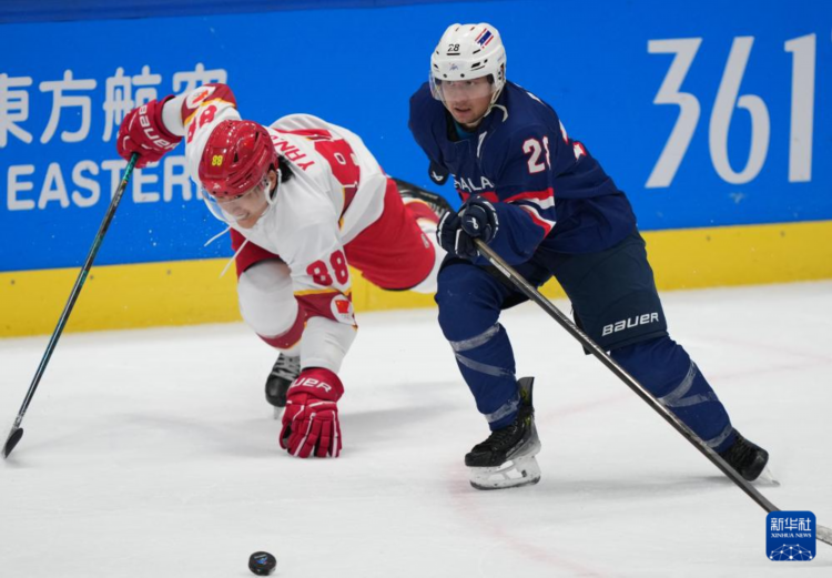 当日,在哈尔滨冰球馆举行的2025年第九届亚冬会男子冰球小组赛A组比赛中,中国队8比0战胜泰国队。