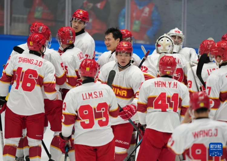 当日,在哈尔滨冰球馆举行的2025年第九届亚冬会男子冰球小组赛A组比赛中,中国队8比0战胜泰国队。