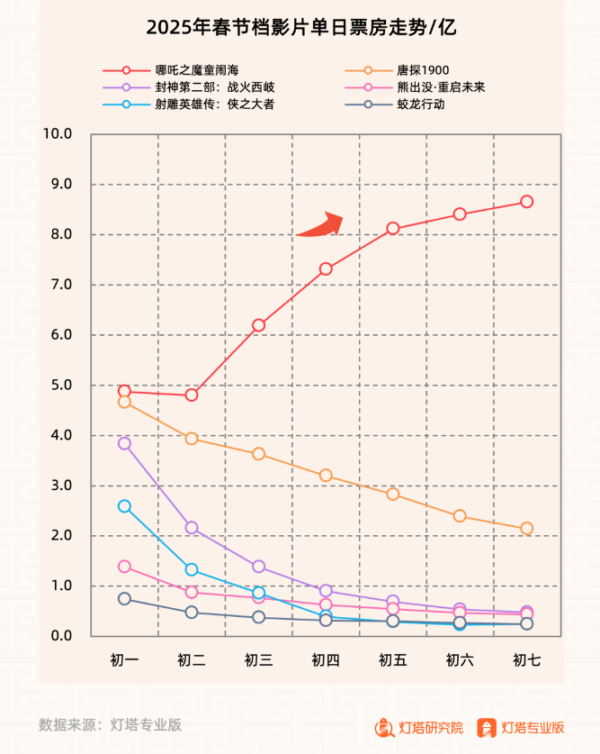 跨越五年之作,《哪吒之魔童闹海》(以下简称《哪吒2》)一经上映,便凭借出色口碑迅速带动影片破圈,票房走势更是“高开疯走”,上映七天连续五日实现票房逆跌。