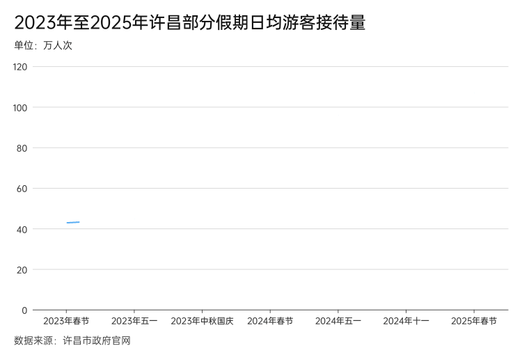 许昌市政府官网数据显示,2023年下半年以来,主要节假日期间,全市日均游客接待量保持在100万人次左右。