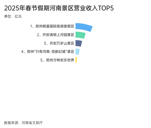 河南省文旅厅数据显示,春节假期八天,全省营收上亿元的景区仅有两家,分别是郑州银基国际旅游度假区1.43亿元,开封清明上河园景区1.03亿元。