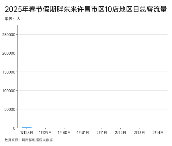河南移动梧桐大数据显示,2月2日至4日,胖东来许昌市区10店地区日均总客流量为假期前五天的3倍多。