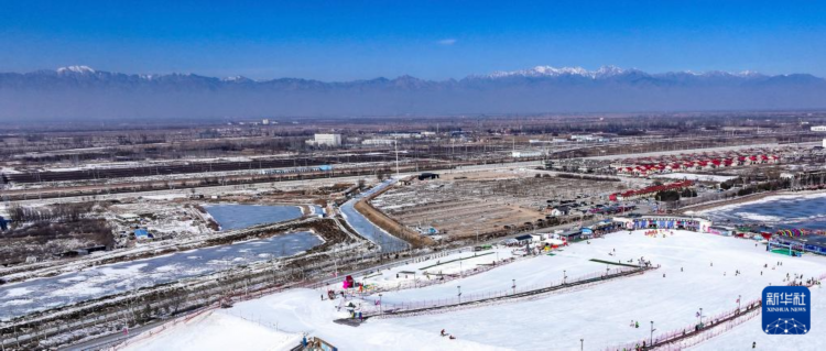 这是2月8日在银川阅海滑雪场拍摄的贺兰晴雪景观(无人机照片)。