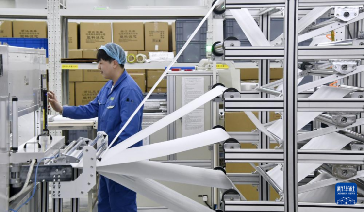 2月8日,工人在位于北京市大兴区亦庄镇的高科技企业普瑞奇科技有限公司高端流体过滤材料生产车间作业。