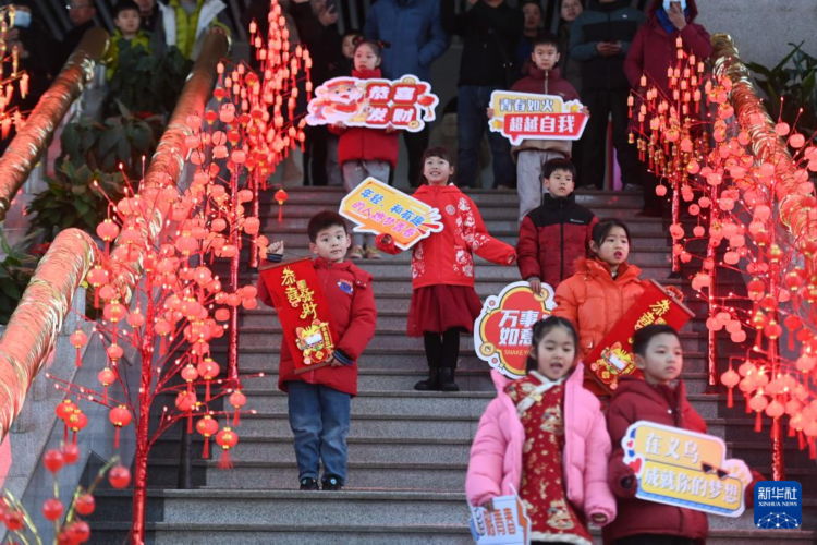 2月9日,小朋友在义乌国际商贸城的大厅进行文艺表演。