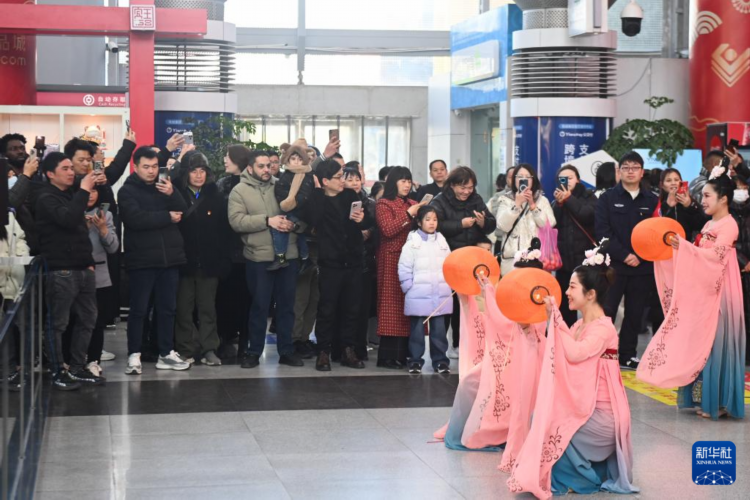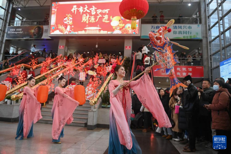 2月9日,演员在义乌国际商贸城的大厅进行文艺表演。
