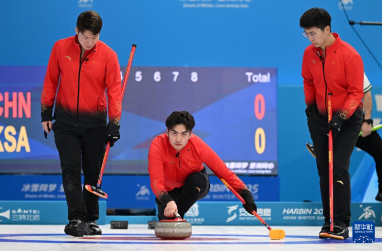 当日,在哈尔滨举行的第九届亚冬会冰壶男子循环赛B组第四轮比赛中,中国队19比1战胜沙特队。