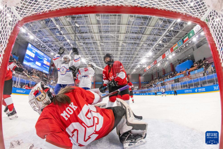 当日,在哈尔滨体育学院大学生滑冰馆举行的2025年第九届亚冬会女子冰球小组赛B组比赛中,中国台北队6比1战胜中国香港队。