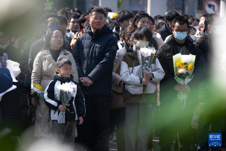 2月10日,人们在武昌殡仪馆大厅外排队等待送别黄旭华院士。