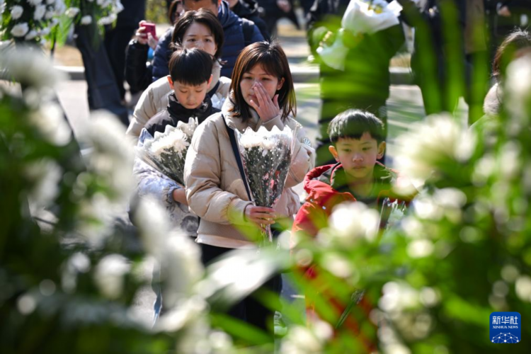 2月10日,人们在武昌殡仪馆大厅外排队等待送别黄旭华院士。