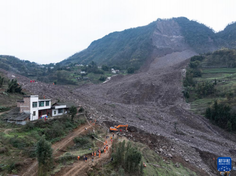 2月10日拍摄的山体滑坡现场(无人机照片)。新华社记者 江宏景 摄