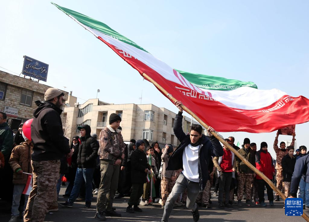 2月10日,在伊朗首都德黑兰街头,民众参加纪念伊朗伊斯兰革命胜利46周年集会。