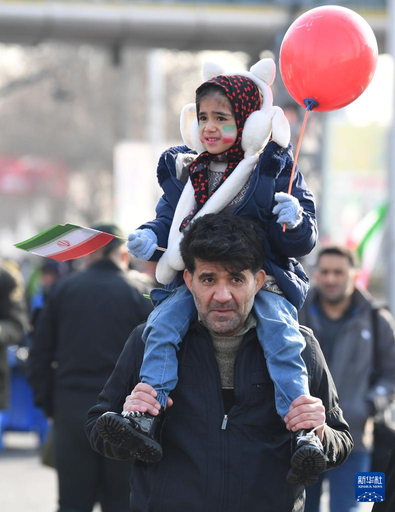 2月10日,在伊朗首都德黑兰阿扎迪广场,民众参加纪念伊朗伊斯兰革命胜利46周年集会。