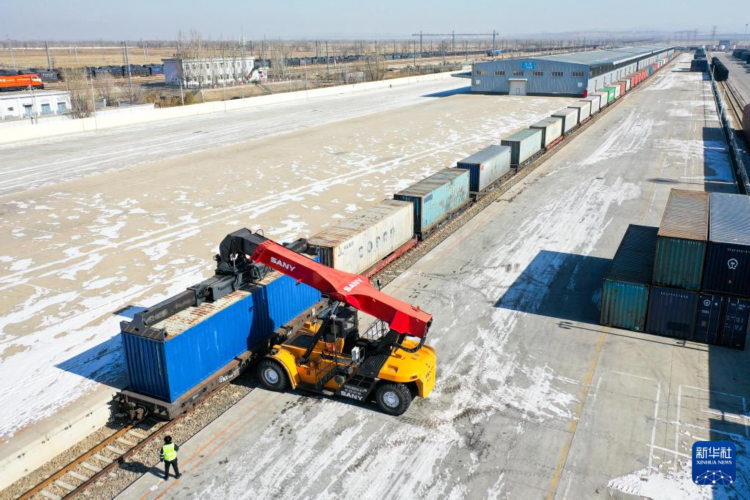 新春伊始,在内蒙古呼和浩特市中欧班列集结中心——沙良物流园内,工作人员忙碌地开展中欧班列集装箱装运工作。今年以来,为有效保障中欧班列运输通畅,中国铁路呼和浩特局集团有限公司呼和浩特铁路物流中心提前调配装卸机具和人员,对中欧班列采取优先装卸、优先配车、优先发运等措施,助力中欧班列安全高效开行。