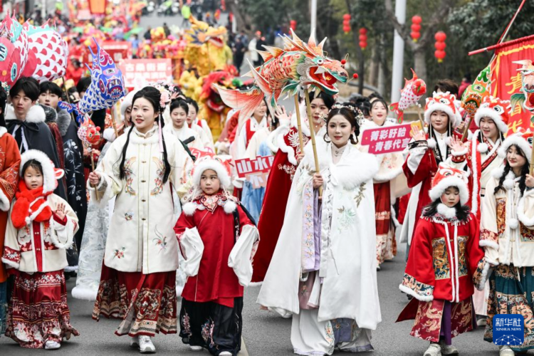 2月11日,小朋友参加巡游。
