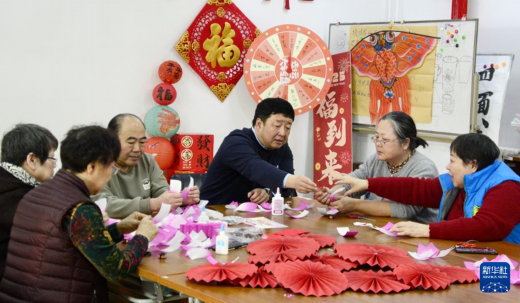 2月10日,马海捷(右三)在朝阳区安贞街道残疾人职康站指导残疾人朋友和工作人员学习制作灯彩。