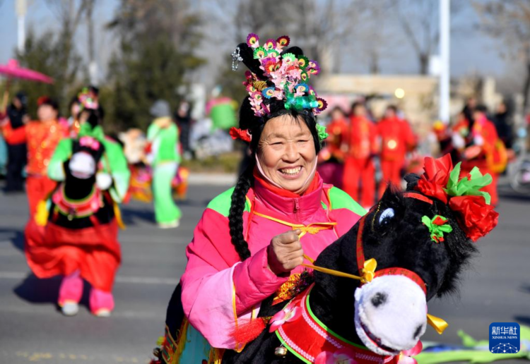 2月9日,河北省石家庄市元氏县群众表演“骑毛驴”。