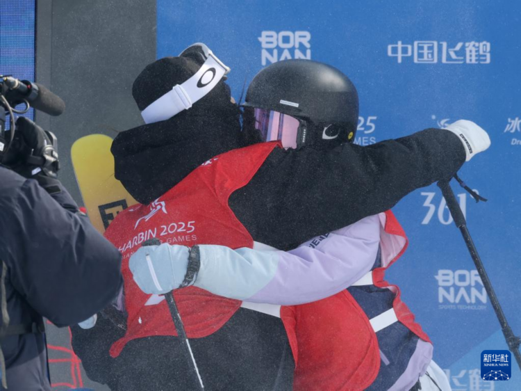 2月12日,刘梦婷(左)和韩林杉赛后拥抱庆祝。
