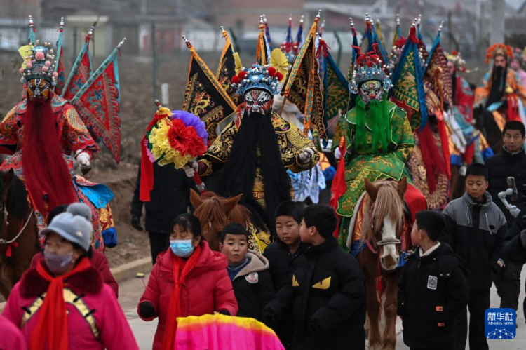 春节期间,“中国社火文化之乡”陕西省宝鸡市陇县年味十足,热闹非凡。从县城的大街小巷到乡村的田间地头,随处可见各类社火游演队伍。骑在马背上的“马社火”、将儿童架在肩上的“挈社火”、走村入户表演的“步社火”……各类社火特色鲜明,精彩纷呈,演绎神话传说和历史人物故事,营造出活力涌动、欢乐祥和的节日氛围。
