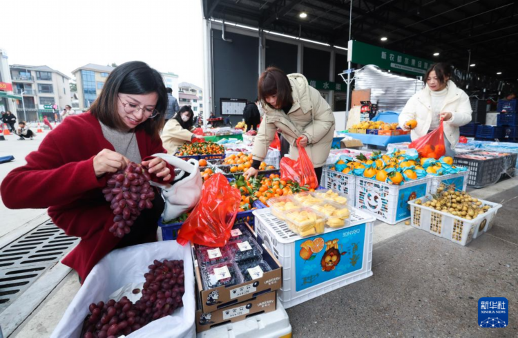 2月12日,消费者在建德市更楼街道的建德新农都农产品批发市场内选购水果。