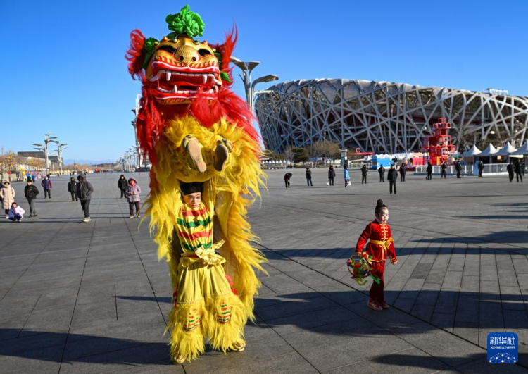 当日是元宵节,在北京奥林匹克公园内的北顶娘娘庙至国家体育场“鸟巢”南广场一线,北京的狮舞(白纸坊太狮)、浙江的龙舞(浦江板凳龙)、福建的元宵节(闽西客家元宵节庆)中的连城姑田游大龙和陕西的老庙老鼓等非物质文化遗产代表性项目进行了展演巡游。传统非遗文化与“鸟巢”等现代奥运景观相融合,烘托出别样的节庆氛围。