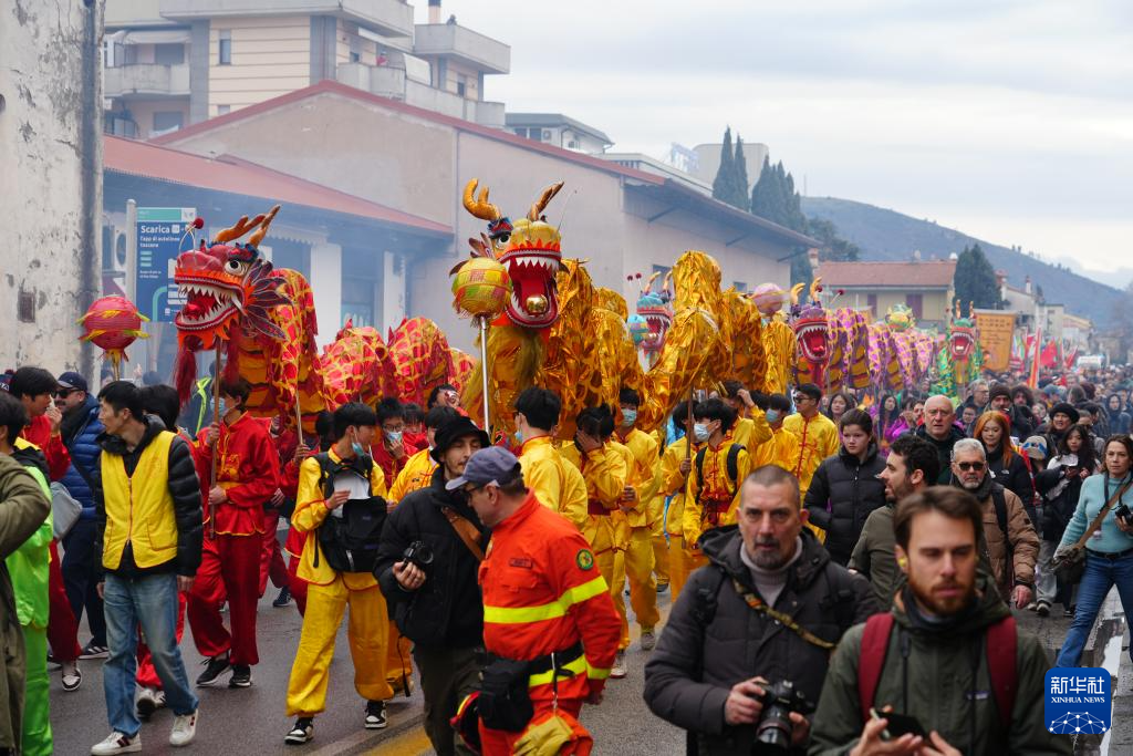 为庆祝中国农历蛇年春节,意大利普拉托市华人聚居区近日举办大型巡游活动,吸引数千民众观看。
