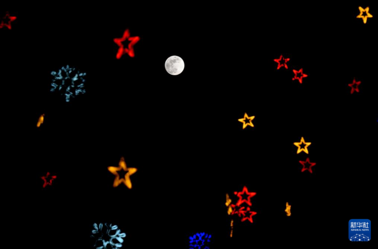 当日是元宵佳节,圆月高悬,银辉洒满大地,亚冬之城哈尔滨在此刻熠熠生辉。