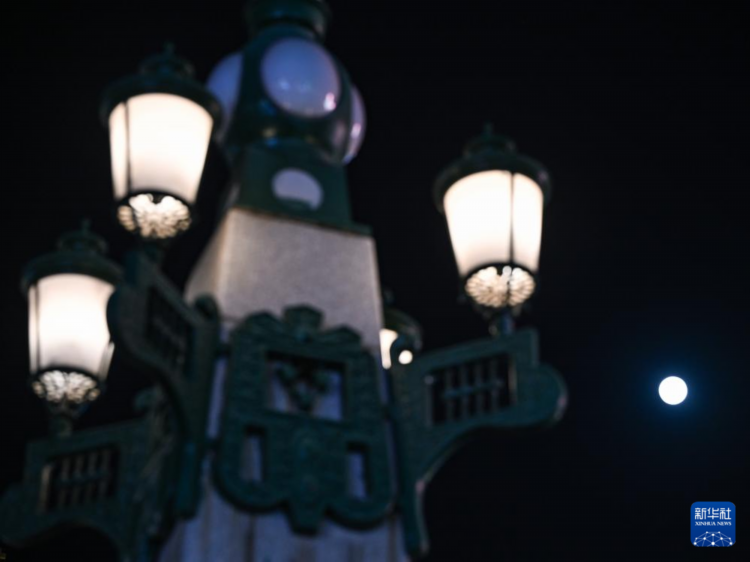 这是2月12日在哈尔滨索菲亚广场拍摄的月亮。