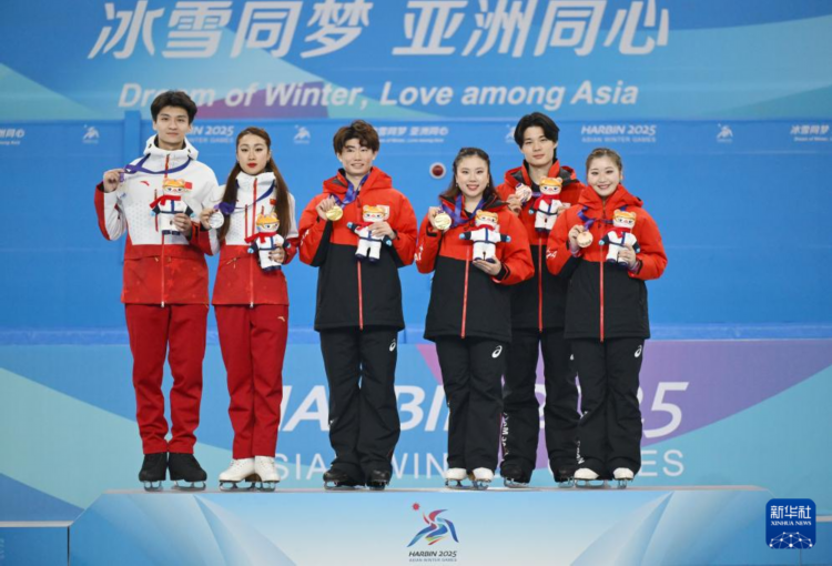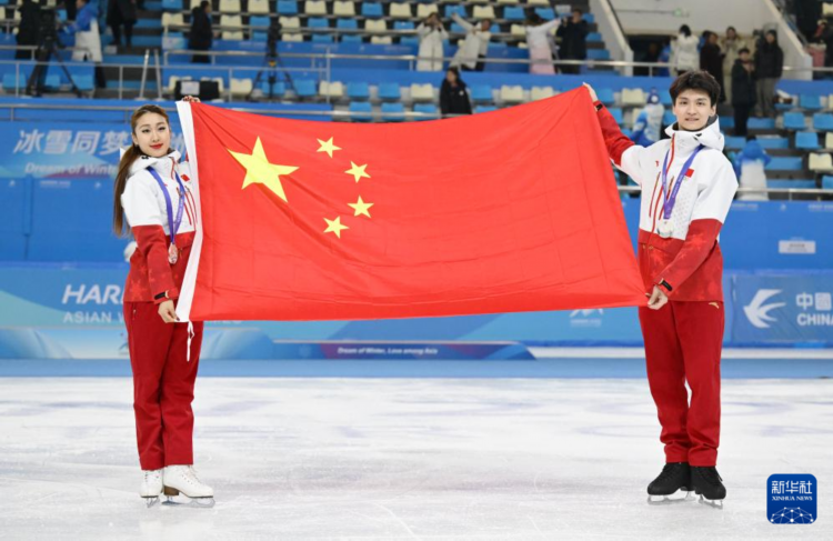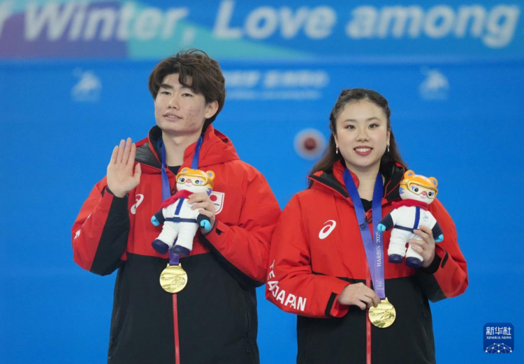 当日,在哈尔滨举行的第九届亚冬会花样滑冰冰上舞蹈比赛中,日本组合吉田呗菜/森田真沙也获得冠军,中国组合任俊霏/邢珈宁获得亚军,日本组合田中梓沙/西山真瑚获得季军。