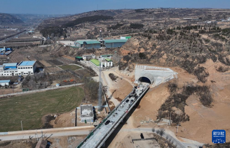 这是西延高铁铜川隧道进口(2月13日摄,无人机照片)。