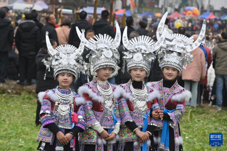 苗族女孩参加柳州市融水苗族自治县安太乡十三坡会(2月10日摄)。