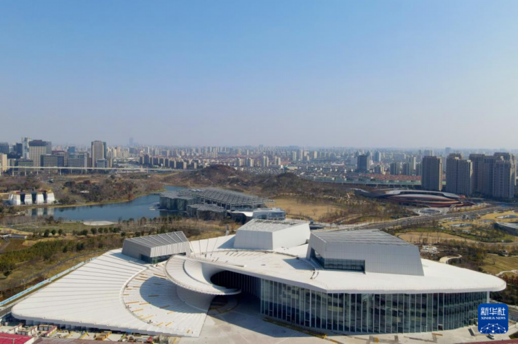 2月13日俯瞰位于世博文化公园内的上海大歌剧院(无人机照片)。