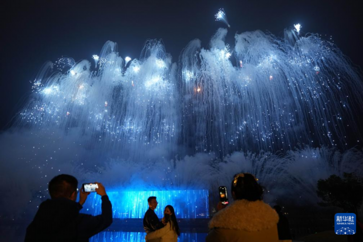 2月15日,一场主题为“春焰启幕 星耀浏阳”的周末焰火秀在湖南省浏阳市天空剧院上演,吸引观众欣赏。