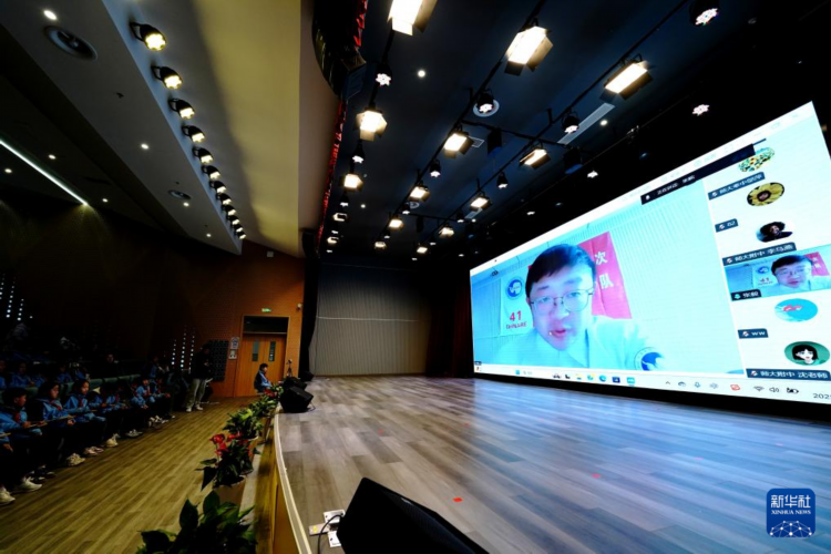 2月17日,上海师范大学附属奉贤实验中学举行“雪龙探秘新征程 海韵逐梦共扬帆”活动。这是该校学生通过视频连线向中国第41次南极考察队队员提问。
