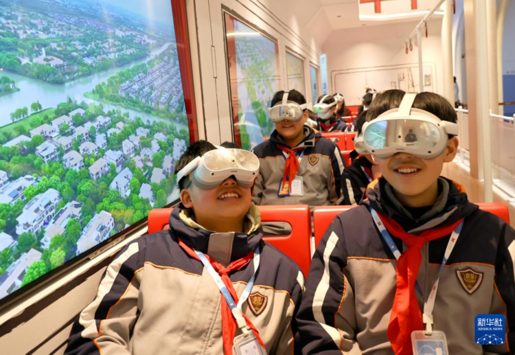 2月17日,在上海博物馆东馆,同济大学附属澄衷中学的学生佩戴VR眼镜观看传统节日视频。