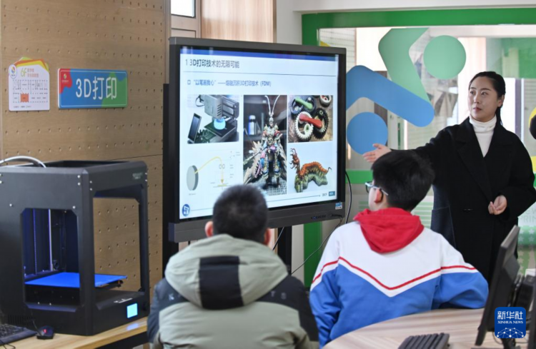 2月17日,天津市和平区新星小学的科学校外辅导员给在“开学第一课”上为学生讲解3D打印知识。
