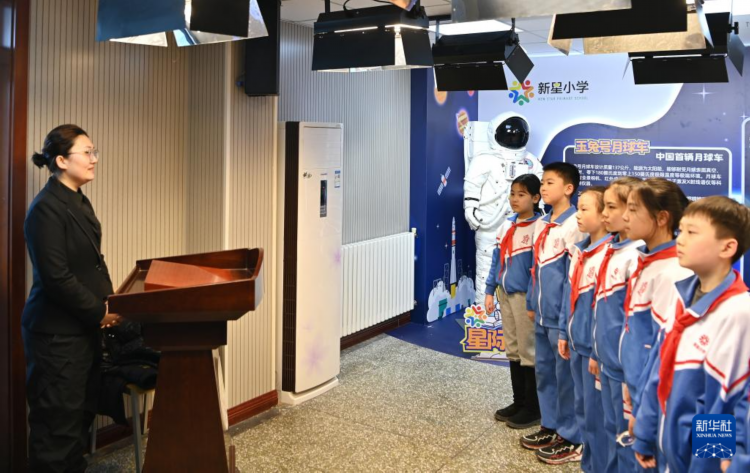 2月17日,天津市和平区新星小学的科学校外辅导员在“开学第一课”上为学生介绍航天知识。