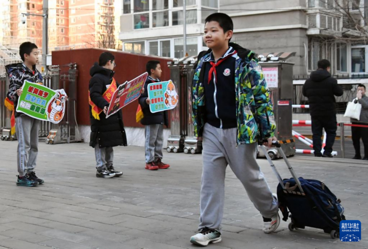 2月17日,学生走进北京市海淀区中关村第二小学(华清校区)。