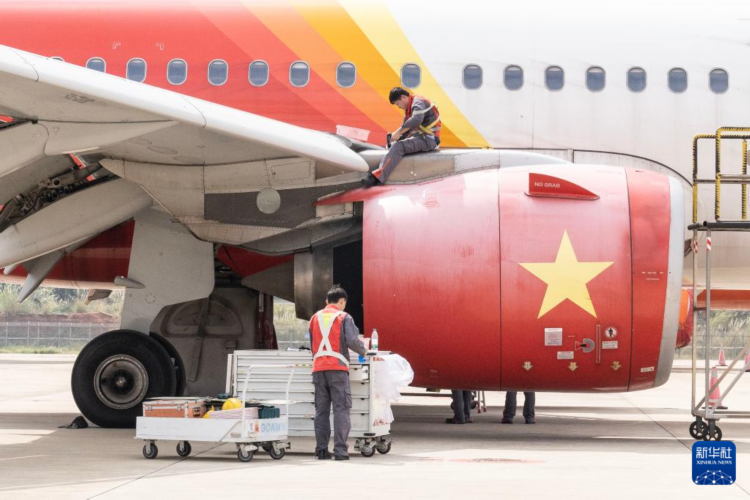 2月17日,在海南自贸港一站式飞机维修产业基地,海航技术旗下大新华飞机维修服务有限公司工作人员对进境飞机进行检修。
