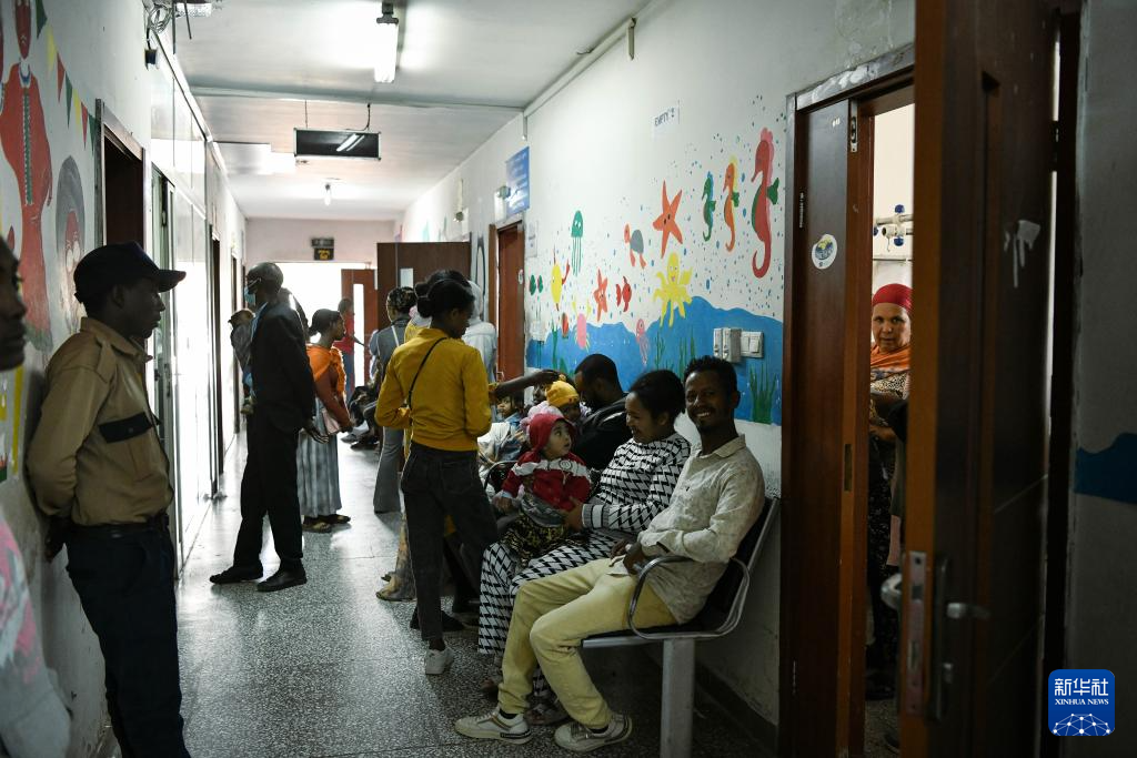2月14日,人们在位于埃塞俄比亚首都亚的斯亚贝巴的蒂鲁内什-北京医院内候诊。