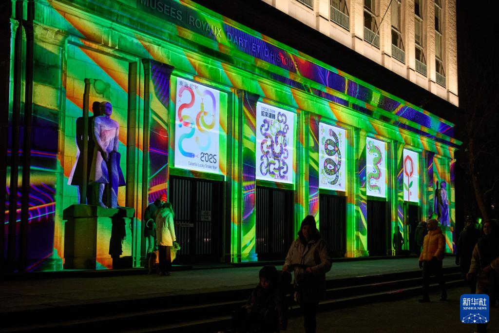 中国元素闪耀布鲁塞尔灯光节 这是2月13日在比利时布鲁塞尔拍摄的投影在皇家艺术与历史博物馆幕墙上的蛇年生肖设计大赛优秀作品。 2月13日晚,一年一度的布鲁塞尔灯光节如约而至,三十余组创意灯光装置将这座欧洲古城装点得璀璨夺目,蛇年生肖设计大赛优秀作品、光影茶榭、“人工智能大熊猫”等蕴含中国元素的创意作品,则为灯光节增添了独特的东方风情。 新华社记者 孟鼎博 摄