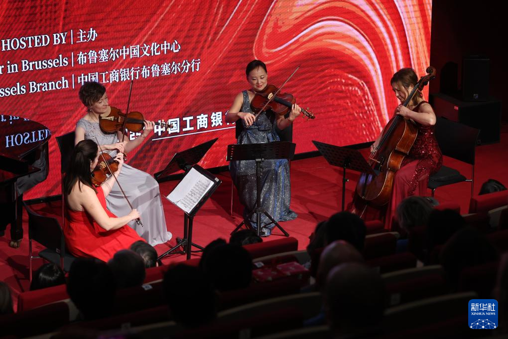 布鲁塞尔中国文化中心奏响新春乐章 2月15日,“艺韵”女子弦乐四重奏组合在比利时布鲁塞尔中国文化中心新春音乐会上演奏。 当日,比利时布鲁塞尔中国文化中心举行2025年新春音乐会。音乐会上,中外艺术家为观众献上《春节序曲》《彩云追月》《第二圆舞曲》《父亲的草原母亲的河》等作品,展现了中西音乐的独特魅力。 新华社记者 赵丁喆 摄
