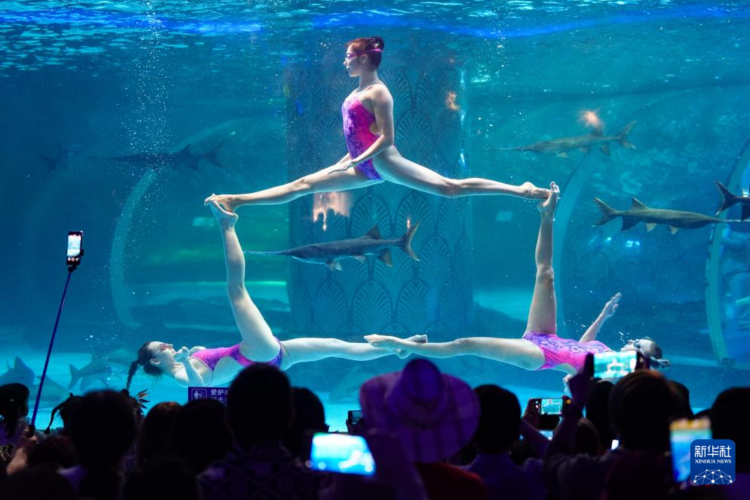 2月19日,演员在西双版纳一景区为游客进行水下表演。