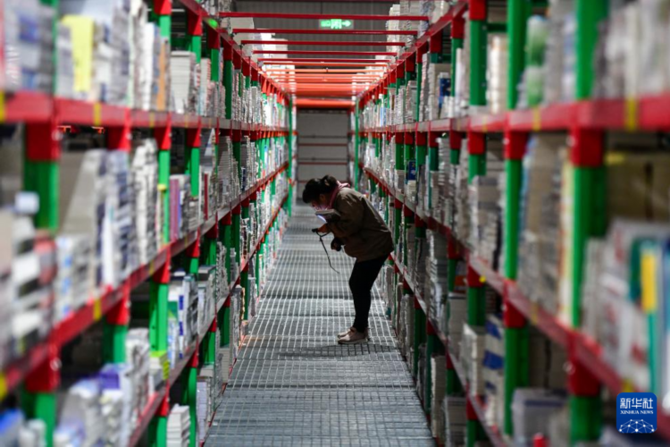 2月20日,一家公司的工作人员在分拣包装书籍。