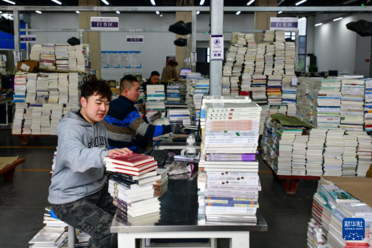 2月20日,一家公司的工作人员在分拣包装书籍。