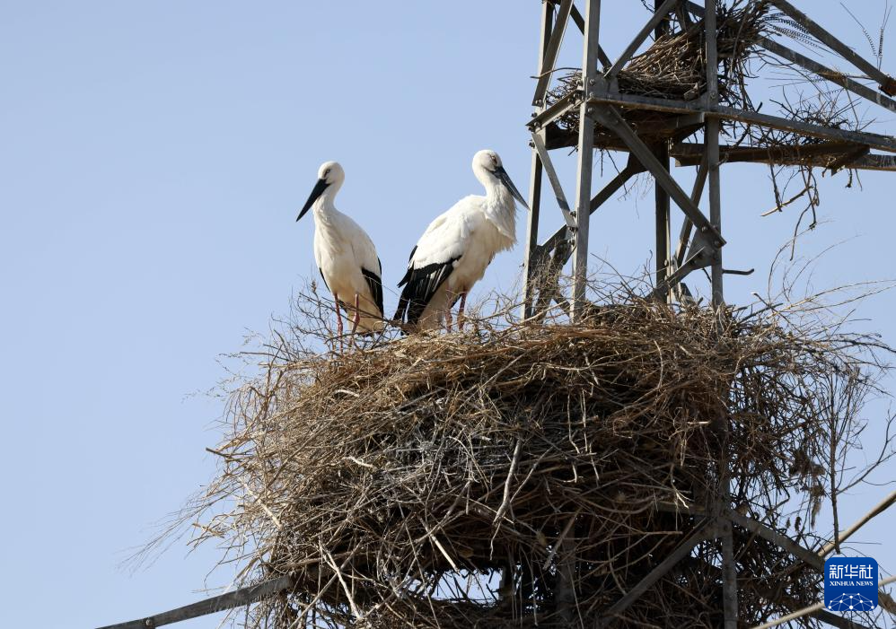 近日,在河北省唐山市丰南区黑沿子镇沿海湿地栖息的国家一级保护动物东方白鹳进入繁殖期。近年来,唐山市丰南区沿海湿地生态环境持续向好,珍稀鸟类数量和种类呈逐年递增的态势,成为东方白鹳等鸟类的重要栖息地。