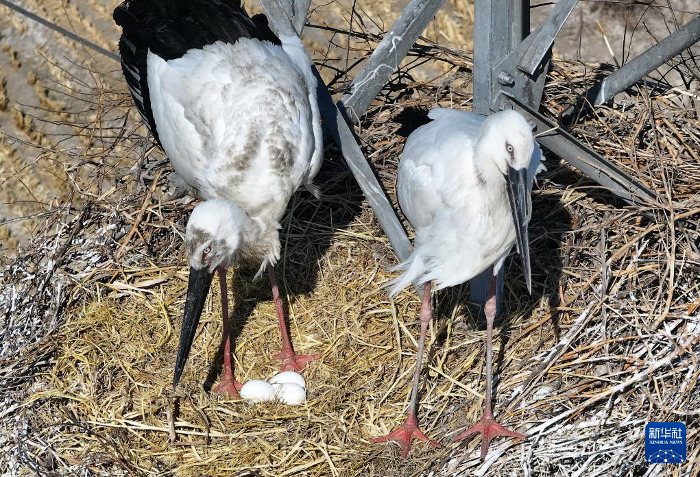 河北丰南:又见东方白鹳沿海湿地筑巢孵化
