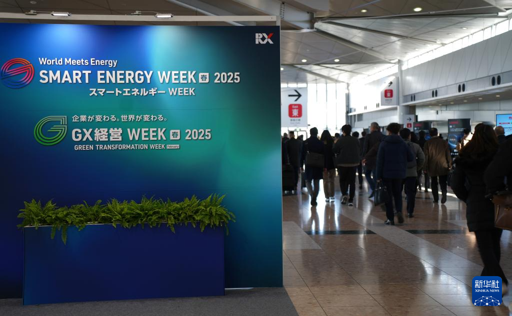 2月19日,在日本东京国际展览中心,参观者步入“智慧能源周”会场。